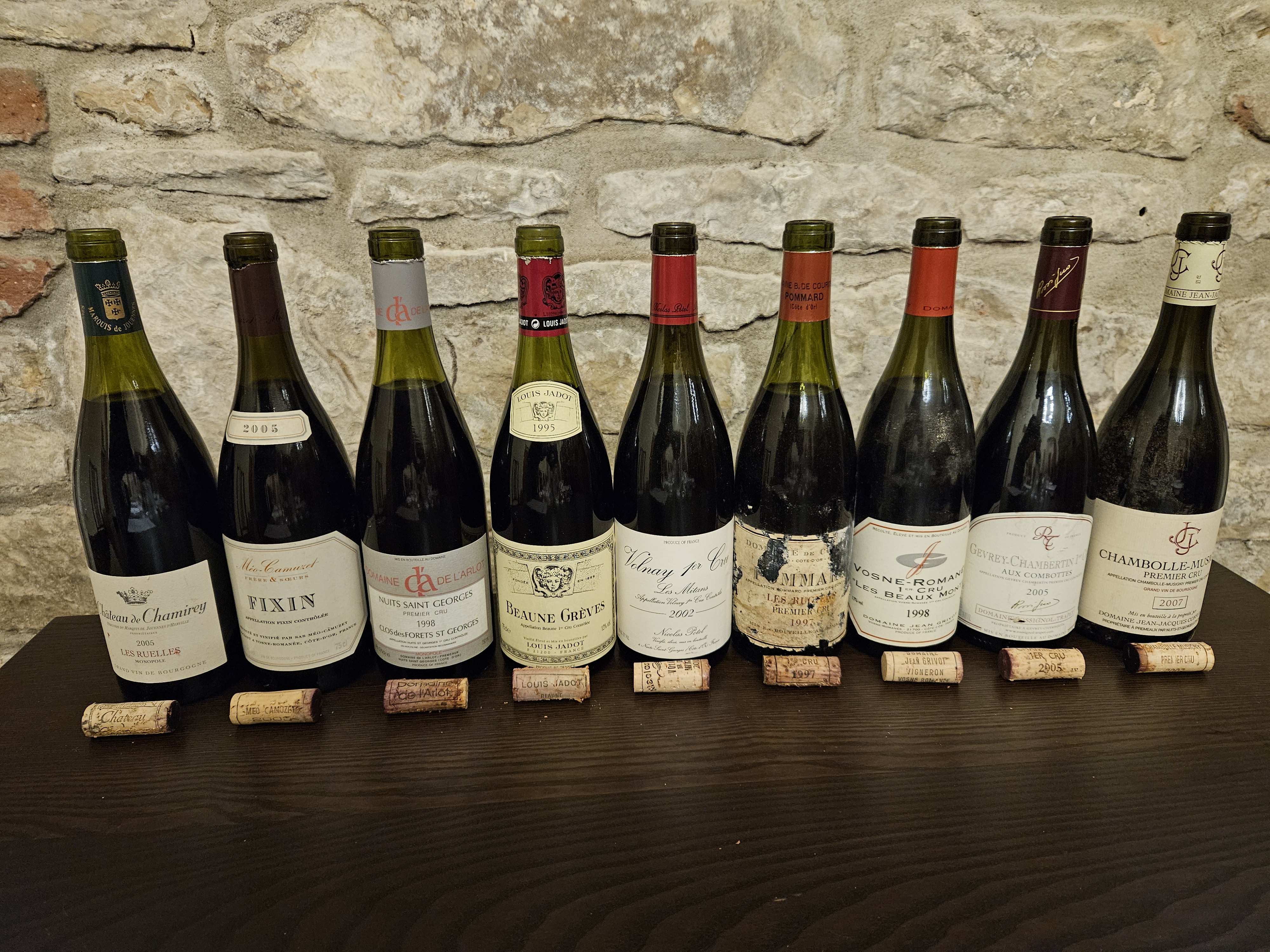 V degustaci jsme ochutnali vína z devíti různých apelací a mohli jsme si vychutnával jejich odlišnosti. Vína byla v obdobné cenové relaci pouze v úrovni AOC Village nebo 1er Cru. nepřekvapí, že na prvních dvou místech byla vína z Cote de Nuits, nicméně Cote de Beaune se také nenechalo zahanbit. Bohužel láhev jednoho z favoritů - Pommard Les Rugiens od de Courcela nebyla zcela v kondici, jinak by možná Cote de Beaune dopadlo lépe. Jedoznačným vítězem bylo Gevrey Chambertin Aux Combottes 1er Cru 2005 od Rossignol Trapet, jemné nádherně pitelné víno plné ovoce a s krásnou dochutí. Na druhém místě bylo Chambolle Musigny 1er Cru od Jean Jacques Confurona. Ročník 2007 byl trochu slabší, ale právě proto bylo víno nyní ideální k pití. O třetí a čtvrté místo se podělily dvě vína z Cote de Beaune - mohutné Beaune 1er Cru Greves Maison 1995 od Louis Jadota s velmi příjemnými terciárními tóny a velmi příjemné Volnay 1er Cru Les Mitans 2002 z vinařství Nicolas Potel, které sice na první napití působilo tvrdě, ale po chvíle se ve sklenici krásně otevřelo.
